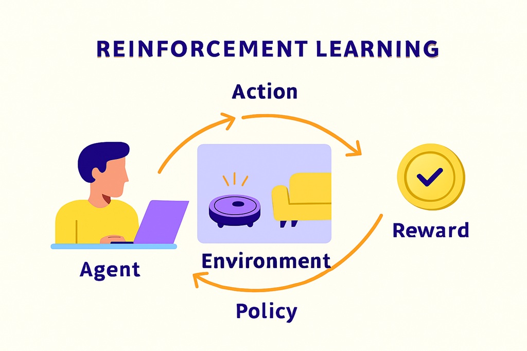 āĻāĻĻāĻžāĻšāϰāĻŖ: āĻāĻāĻāĻŋ dog āĻā§ training āĻĻā§āĻā§āĻžāĨ¤ āϏ⧠āϏāĻ āĻŋāĻ action (āĻŦāϏāĻž) āĻāϰāϞ⧠treat (reward) āĻĒāĻžā§, āĻā§āϞ āĻāϰāϞ⧠nothing (penalty) āĻĒāĻžā§āĨ¤